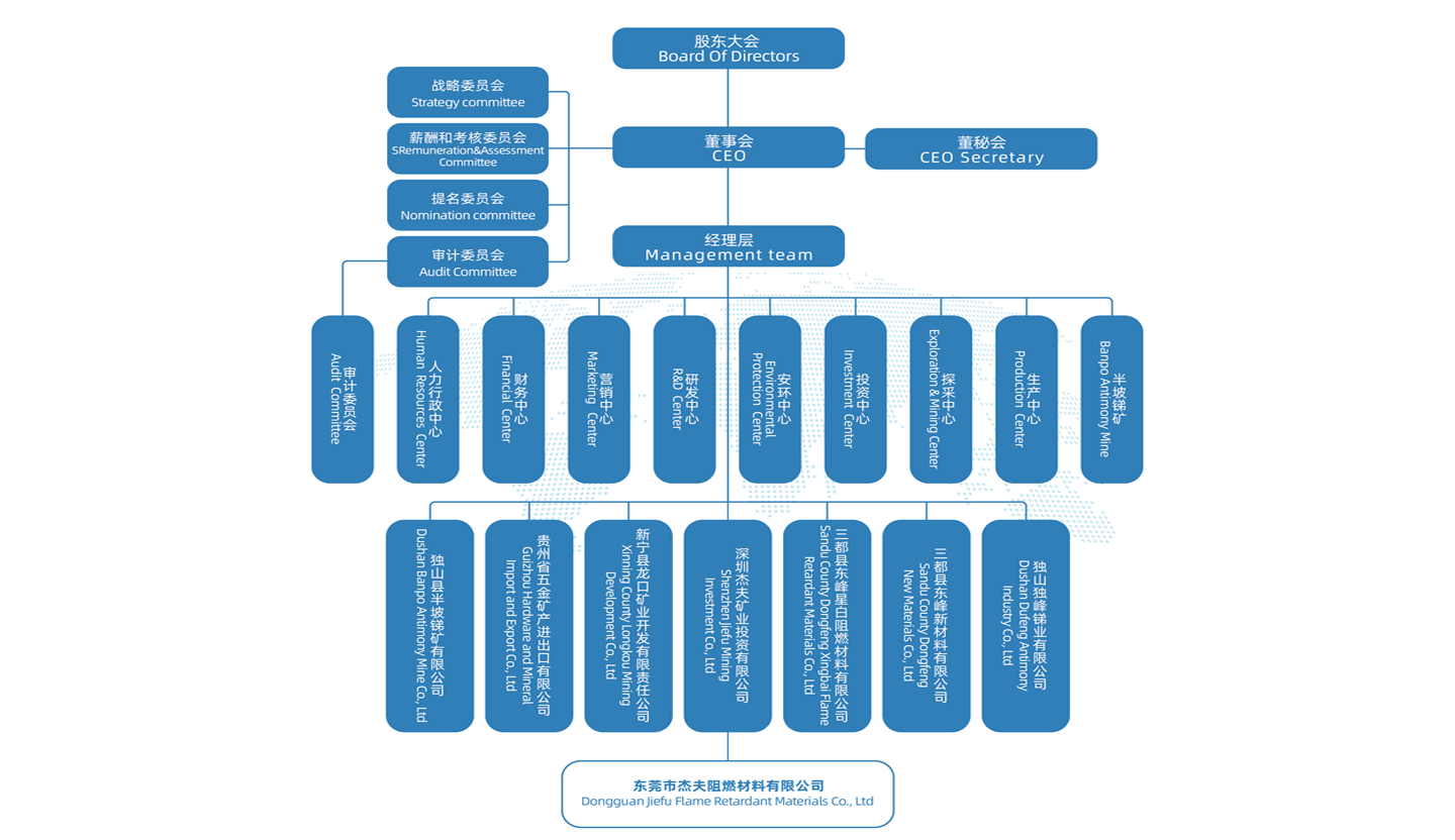 東莞市杰夫阻燃材料有限公司成立于2003年,注冊資本2500萬,是貴州東峰銻業(yè)股份有限公司下屬企業(yè)之一。在2003年通過ISO9001質(zhì)量管理體系認(rèn)證, 2012年通過ISO14001環(huán)境體系認(rèn)證;自2004年開始至今,公司每年均取得了中華人民共和國商務(wù)部認(rèn)定的銻品出口供貨企業(yè)資格。